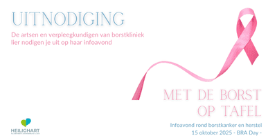 Naar aanleiding van BRA Day, op 15 oktober 2025, nodigen onze specialisten en borstverpleegkundigen je uit op haar informatieavond rond borstkanker en herstel. In een gezellige setting komen diverse topics aan bod, nadien is er mogelijkheid om met onze specialisten na te praten bij een drankje.