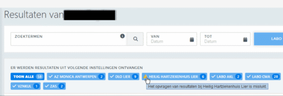 Na eerste onderzoek blijkt dit om een zeer beperkt aantal gevallen te gaan. Deze patiënten merken in CoZo een gele driehoek, waarbij de melding staat ‘Het opvragen van resultaten bij het HeiligHartziekenhuis Lier is mislukt’.